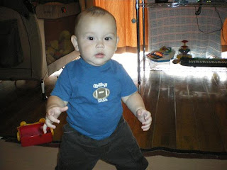 Just a month ago he is only crawling but days past and now he is already learning how to walk. He is only 9months old but he can stand his own without any support... i guess it's too early for his age, right? Or maybe most boys are just fast learner. wait a minute, he can only have 5to6 step only but i think it's amazing for his age.